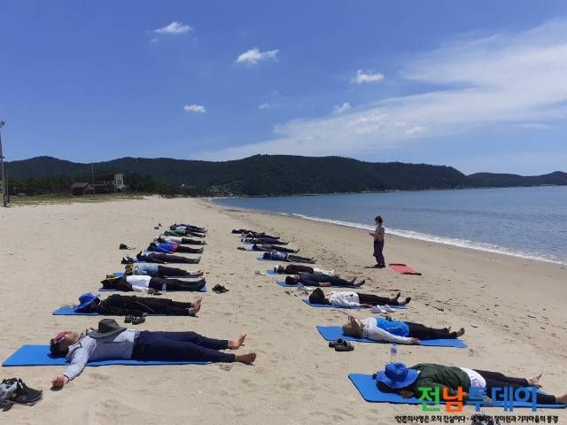 힐링 명상 초급 지도사 양성 교육은 깨끗한 것은 물론 산소 음이온이 풍부하고 다양한 해양치유자원을 보유하고 있는 신지명사십리해수욕장 일원에서 5월 18일부터 24일까지 진행됐다.
