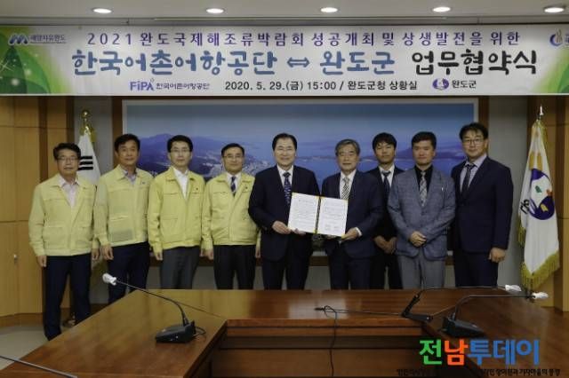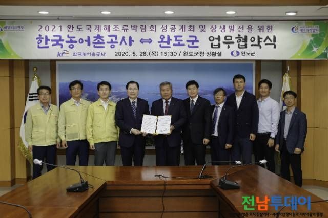 [전남투데이 김오례기자]완도군은 지난 5월 28일에는 한국농어촌공사와 29일에는 한국어촌어항공단과 2021 완도국제해조류박람회 성공 개최 협력 및 상생 발전을 위해 업무 협약을 체결했다고 밝혔다.