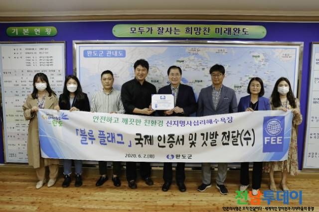 완도군 관계자는 6월 2일 완도군청에서 환경교육재단(FEE)의 국내 본부인 FEE KOREA로부터 블루플래그 인증서를 전달 받았다고 밝혔다.