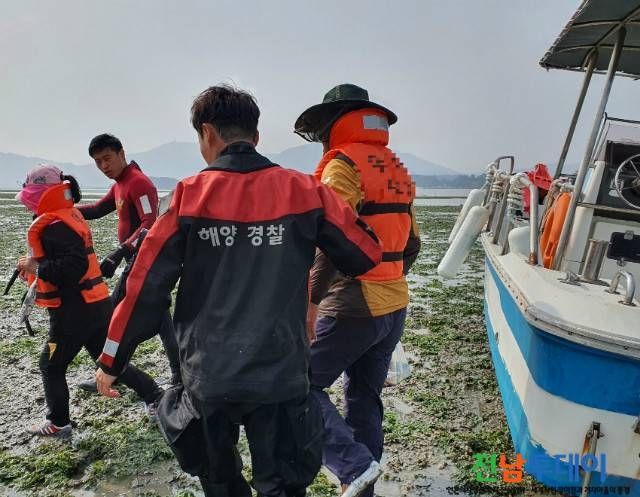 [전남투데이 김오례기자]완도해양경찰서(서장 박제수)는 지난 5일 오후 3시 50분경 완도군 군외면 불목리 해상에서 물때를 놓쳐 갯벌에 갇힌 모터보트 승선원 3명을 구조했다.