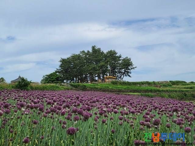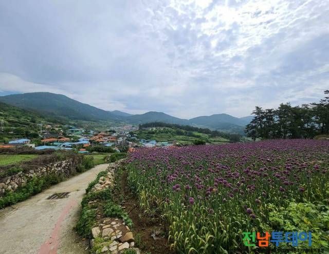 ‘청산도’하면 노랗게 청산도를 물들인 유채꽃이 떠오르는데 유채꽃이 진 후 코끼리마늘 꽃이 활짝 피어 새로운 경관 작물로 급부상하여 관광객 유치에도 도움이 될 것으로 기대하고 있다.