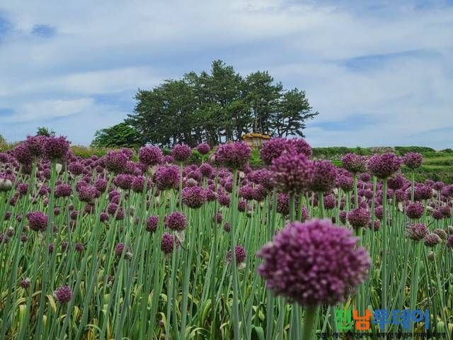 [전남투데이 김오례기자]아시아 최초 슬로시티 완도군 청산도에 우리나라 토종 마늘인 코끼리마늘의 보라색 꽃이 탐스럽게 피어 눈길을 끌고 있다.