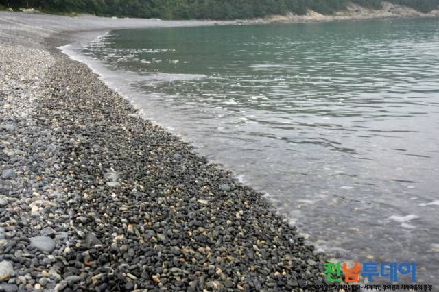 보길도 예송해수욕장은 모래 해변이 아닌 청명석이라 불리는 갯돌로 이루어진 길이 약 2km, 폭 50m의 해변이다.