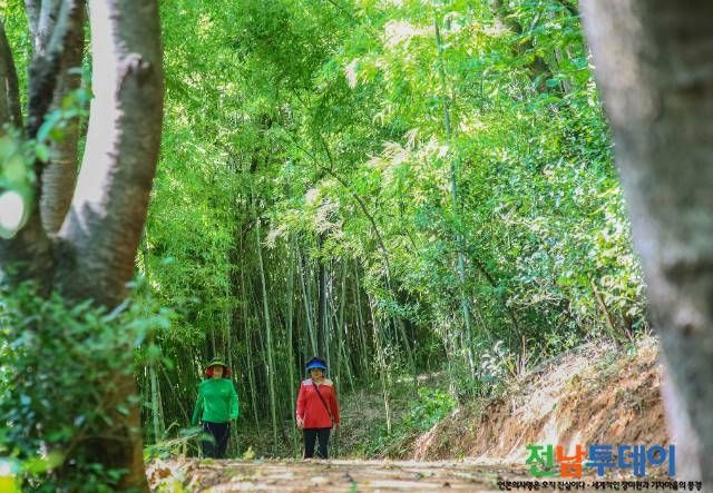 봉성산 둘레길은 데크로드를 비롯한 인공물 설치를 최대한 줄이고 흙길과 야자매트로 조성했다. 벚나무숲, 소나무숲, 대나무숲, 야생녹차밭 등이 어우러져 있다.