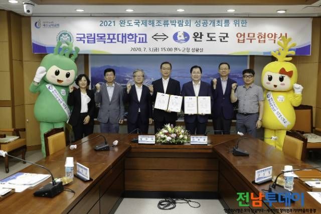 [전남투데이 김오례기자]완도군은 지난 3일 목포대학교와 2021완도국제해조류박람회 성공 개최를 위한 업무 협약을 체결했다.