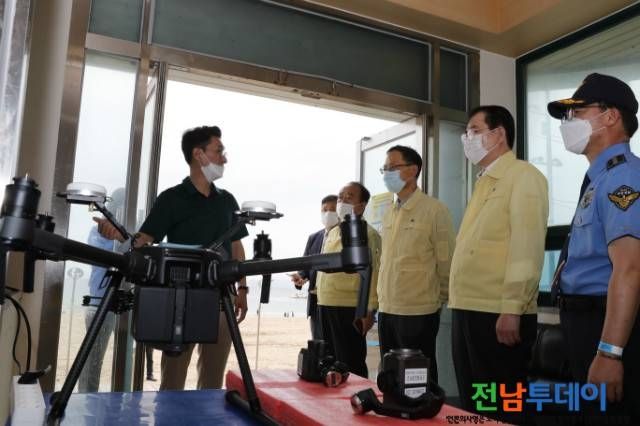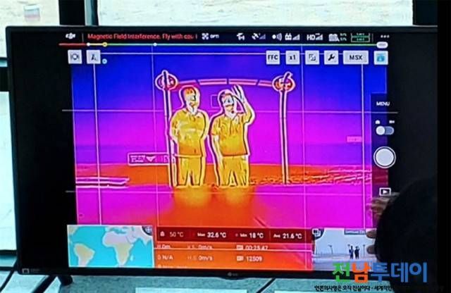 지난 18일 신우철 완도군수와 송상락 전남도 행정부지사 및 유관 기관장 등 10여 명이 참석한 가운데 드론에 열화상 카메라를 장착하여 실시간 모니터링을 통해 체온이 높은 피서객을 찾아내는 방법을 전국 최초로 시범 운영하며 실용화를 서두르고 있다.
