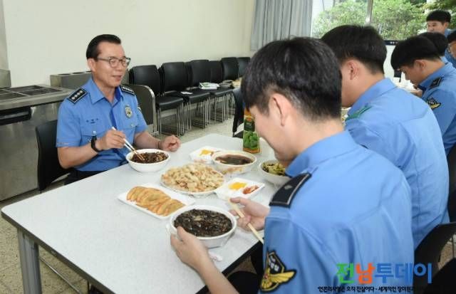 또한 이날 완도해경에서는 박제수 서장과 의무경찰들이 함께 덕분에 챌린지에 참여하고 코로나19로 인한 저하된 사기를 극복하기 위해 지휘관과 함께하는 짜장면 DAY를 실시했다.