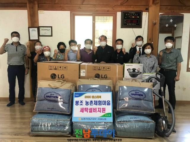 이날 참석자로는 곡성군농정지원단장(박상희), 곡성농협조합장(주성재), 상임이사(정재완), 팜스테이 봉조리회장(심재운) 외 10명이 개인 방역수칙 준수와 올바른 개인 마스크 착용을 철저히 지키면서 세탁설비 지원 전달식을 가졌다.