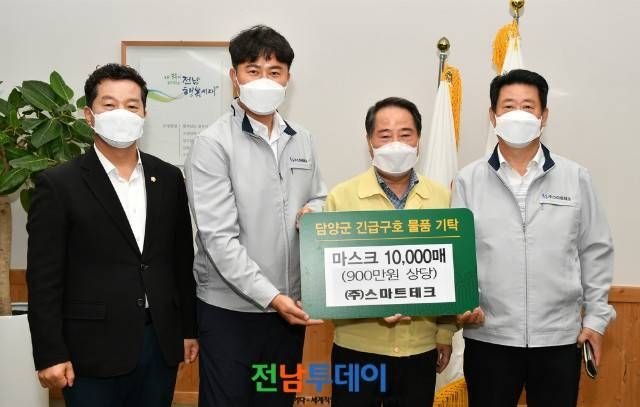 이날 기탁식에는 최형식 담양군수, 김정오 담양군의회 의장, ㈜스마트테크 김순재 대표 등 관계자가 참석했다.
