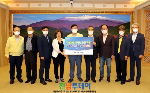 [전남투데이 이재진 취재본부장]지역 SNS 모임 ‘민주정권계승방’이 집중호우로 피해를 입은 동·남구 수재민을 위해 다용도 전기포트 100개를 광주광역시에 전달했다.