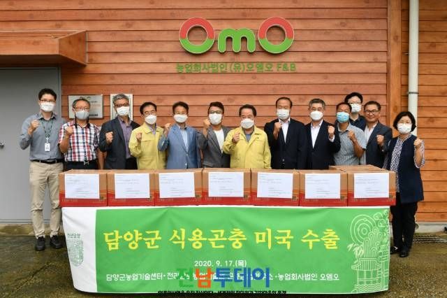 담양군(군수 최형식)은 지난 17일 농업회사법인 오엠오와 함께 담양군 식용곤충(밀웜) 미국 수출 선적식을 가졌다.