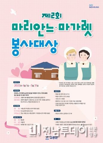 전남투데이 강선길 기자 | 고흥군은 마리안느와 마가렛 두 분 간호사의 숭고하고 헌신적인 봉사정신을 잇는 제2회 마리안느ㆍ마가렛 봉사대상 후보자를 추천 공모한다.