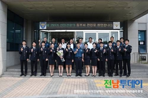 [전남투데이 윤진성 기자]대구동부경찰서에서는 8월 6일(월) 09:40경 경찰서 1층 로비에서 중앙경찰학교를 졸업하고 첫 출근하는 김예지 순경 외 11명의 신임경찰관의 환영식을 가졌다.