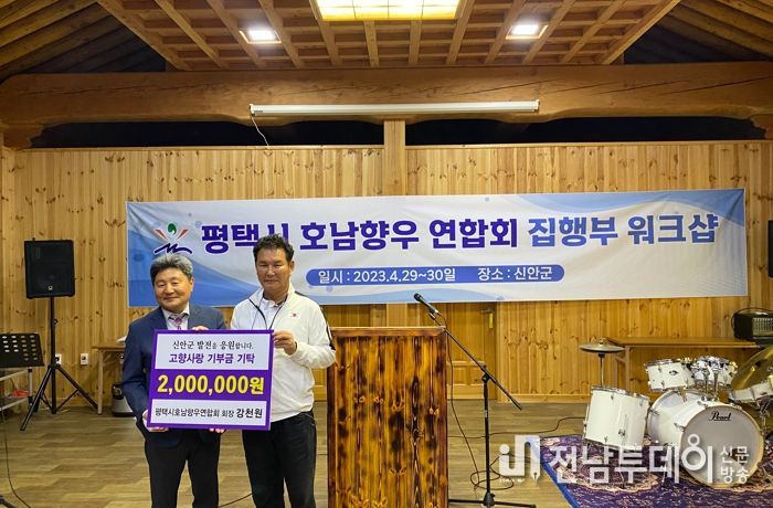 전남투데이 임정용 기자 | 평택시호남향우연합회 강천원 회장은 지난 29일 신안군을 방문해 고향사랑기부금 200만원을 전달하며 고향사랑기부제 확산에 동참했다.