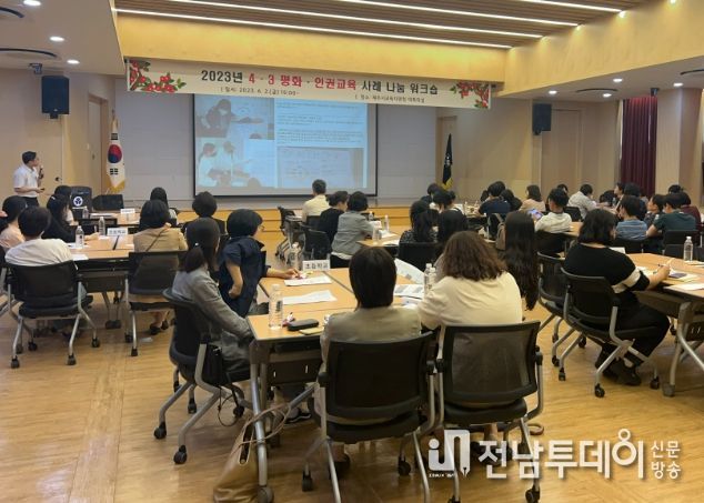 전남투데이 김영범 기자 | 제주시교육지원청은 6월 2일, 제주시 관내 초・중학교의 4・3 평화・인권교육 주간 운영사례 공유를 위한 ‘2023년 4・3평화・인권교육 사례 나눔 워크숍’을 개최했다.