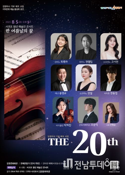 전남투데이 김완규 기자 | 서귀포시는 김정여사 기부 20주년을 맞아 김정 여사 기부 예우사업의 일환으로 진행할 '지역 문화예술 활성화 공연 시리즈'를 오는 8월 5일부터 8월 19일까지 매주 토요일 오후 5시에 김정문화회관 공연장에서 개최한다.