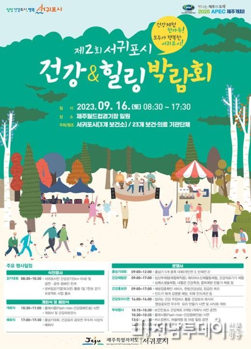 서귀포시 관계자는 “다양한 건강체험 제공으로 건강생활실천 분위기를 조성하고 온 시민이 함께 만들고 즐기는 행복하고 건강한 서귀포시를 만들기 위해 최선을 다하겠다. 또한 2025 APEC 정상회의 제주유치를 기원한다”라고 밝혔다.