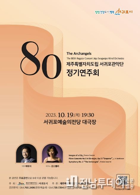 전남투데이 김완규 기자 | 서귀포시는 제주특별자치도립 서귀포관악단의 제80회 정기연주회를 10월 19일 19시 30분 서귀포예술의전당 대극장에서 개최한다.