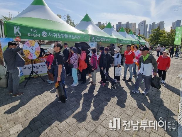 전남투데이 김완규 기자 | 서귀포시는 10월 5일부터 10월 8일까지 4일간 인천 계양구 계약실내체육관 일원에서 개최된 '2023 전국우수시장박람회'에 참가해 ‘서귀포향토오일시장’과 ‘서귀포매일올레시장’의 특화상품 및 지역특산물 등을 홍보했다.