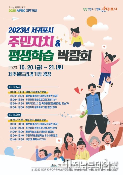 전남투데이 김완규 기자 | 서귀포시는 10월 20일 ~ 21일, 2일간 제주월드컵경기장 광장에서, 시민과 함께 배우고 즐기는 “2023 서귀포시 주민자치 & 평생학습 박람회”를 개최한다.