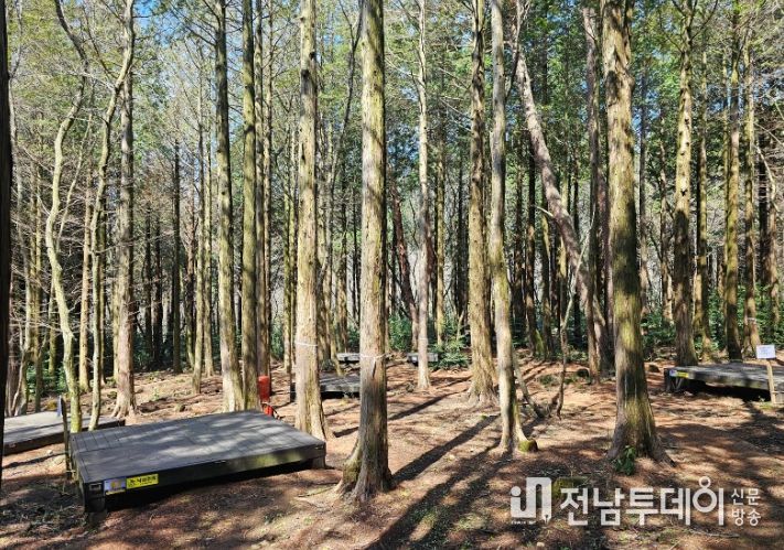 전남투데이 천세두 기자 | 서귀포시는 야영객들에게 안전하고 쾌적한 시설을 제공하기 위해 사업비 57백만원을 투입하여 서귀포자연휴양림 편백야영장(A=2,950㎡) 보완사업을 지난 3월 25일에 착공하여 7월 중 준공할 계획이라고 밝혔다.