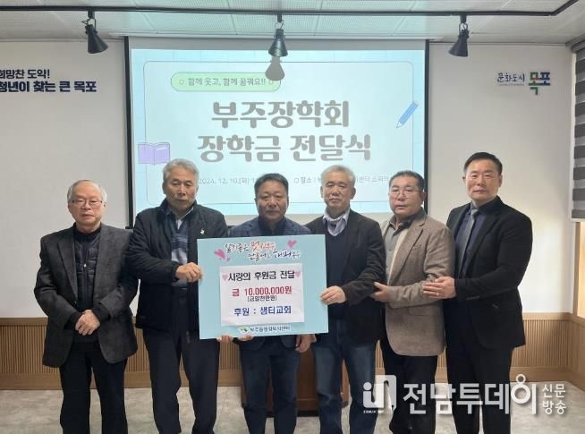 전남투데이 김보성 기자 | 부주동 부주장학회는 지난 10일 부주동 행정복지센터 2층 소회의실에서 장학금 전달식을 열고, 고등학생 5명과 대학생 5명에게 총 750만원의 장학금을 전달했다.