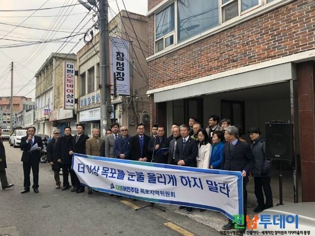 [전남투데이 윤진성 기자]더불어민주당 목포시지역위원회(위원장 우기종) 소속 도,시위원 및 당원들은 28일 오전 10시 '손혜원 의혹'으로 논란이 되고 있는 창성장 앞에 모여 목포근대역사문화공간 사업에 대한 소모적인 정쟁을 중단하고 목포시 재생사업 성공을 위해 목포시민들이 따뜻한 관심을 가져주실 것을 호소드리는 성명서를 발표하였다.