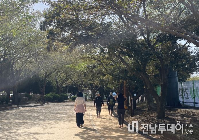 지난해 12월 사업비 1억 8천만 원을 투입해 조성한 182m 규모의 황톳길에는 날씨가 따듯해지면서‘맨발 걷기’를 즐기는 시민들의 발길이 이어지고 있다.