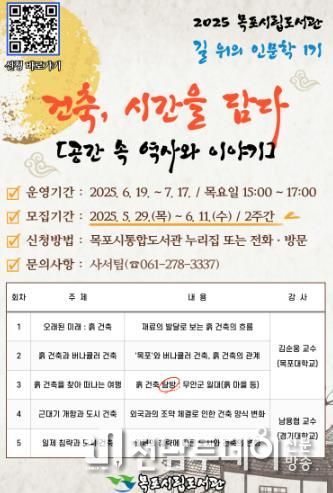 도서관 관계자는 “건축은 단순한 구조물이 아니라, 그 시대를 살아낸 사람들의 기억과 흔적을 담고 있는 중요한 인문학적 자산이다”며 “길 위의 인문학 강연을 통해 지역 건축과 역사에 대한 이해를 넓히고, 도서관 또한 지역 문화의 거점으로 자리매김하길 기대한다”고 밝혔다.