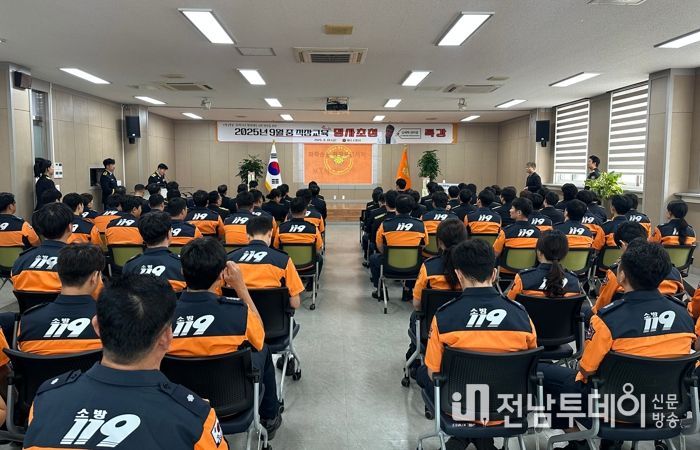 전남투데이 조평훈 기자 | 여수소방서는 9월 19일 본서에서 소방공무원의 현장대응 능력 향상과 안전한 소방문화 정착을 위한 2025년 9월 중 직장교육훈련을 실시했다. 여수소방서는 소방공무원들의 역량 강화를 위해 분기별로 다양한 주제를 선정해 체계적인 직장교육을 꾸준히 실시하고 있다.