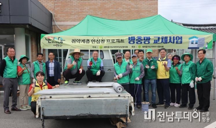 전남투데이 조평훈 기자 | 새마을지도자여수시협의회와 19일 ‘취약계층 안심창 프로젝트’의 일환으로 소라면 마산마을과 봉두3구 마을에서 취약계층 가정을 대상으로 방충망 교체 봉사활동을 실시했다.