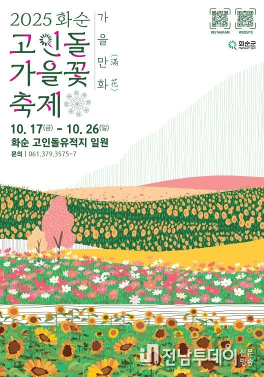 전남투데이 강영선 기자 | 화순군은 오는 10월 17일부터 26일까지 10일간 화순 고인돌 유적지 일원에서‘2025 화순 고인돌 가을꽃 축제’를 개최한다고 밝혔다.