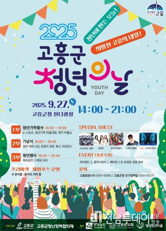 전남투데이 조평훈 기자 | 고흥군은 오는 9월 27일 고흥군청 잔디광장에서 ‘2025년 고흥군 청년의 날’ 행사를 개최한다고 밝혔다.