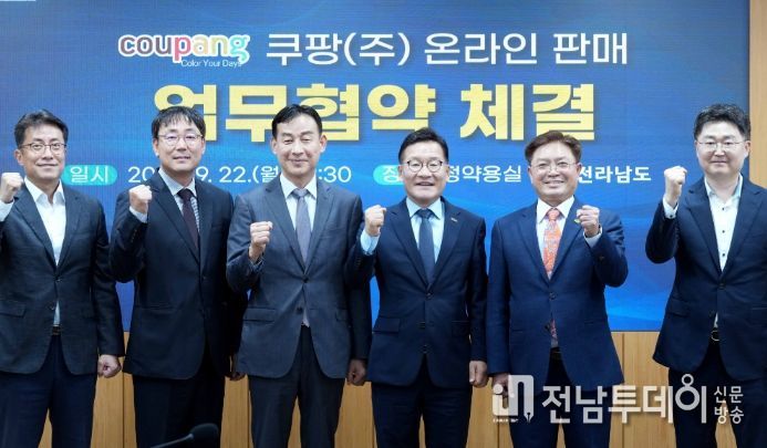전남투데이 손영욱 기자 | 전라남도는 22일 도청 정약용실에서 쿠팡㈜, 전남도상인연합회와 함께 ‘전통시장 온라인 판로 확대를 위한 업무협약’을 했다고 밝혔다.