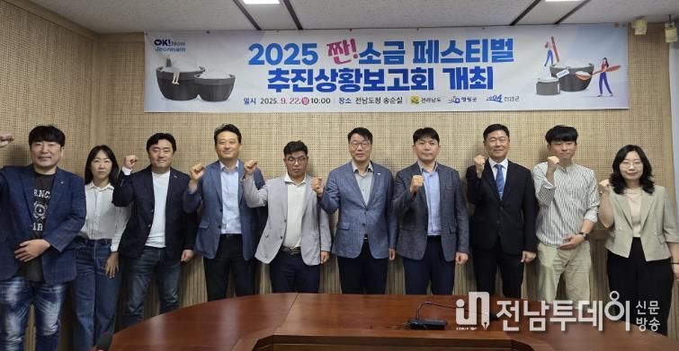 전남투데이 손영욱 기자 | 전라남도는 22일 도청 송순실에서 2025 소금박람회 ‘짠! 소금 페스티벌’의 성공적 개최를 위한 추진상황 보고회를 열어 준비상황을 점검하고 향후 보완 사항 등을 논의했다고 밝혔다.