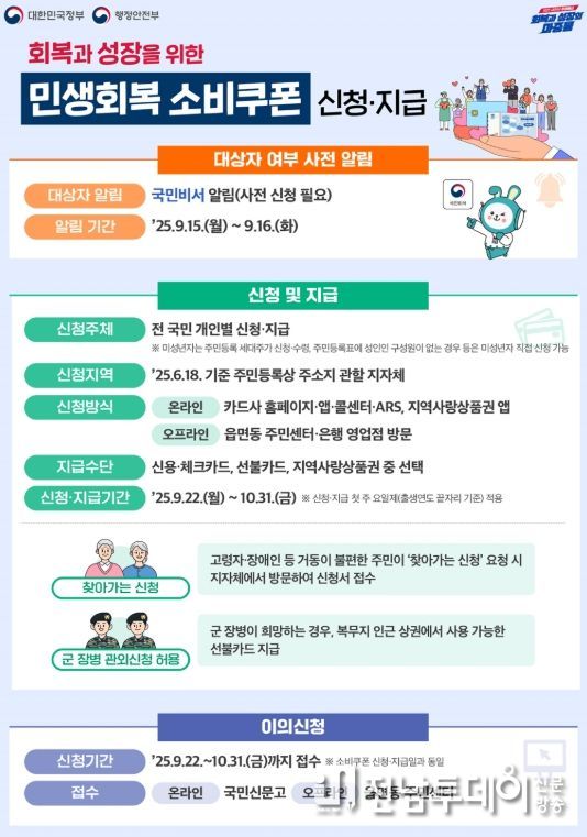 김인보 여수시 경제일자리과장은 “이번 2차 지급 역시 무엇보다도 시민들이 안전하고 편리하게 소비쿠폰을 지급받을 수 있도록 최선을 다하겠다”며 “시 누리집이나 주민센터 외에 URL이 포함된 문자 등은 공식 안내가 아니므로 스미싱 피해에 각별히 주의해달라”고 당부했다.
