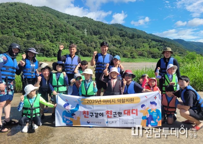 전남투데이 강길수 기자 | 구례군가족센터(센터장 박미연)는 9월 14일 전남 구례군 간전면 섬진강 일대에서 아버지와 초등학생 자녀 10가족이 참가하여 래프팅 및 물놀이 활동을 진행했다. 이번 행사는 아버지 역할 지원 사업 ‘친구처럼 친근한 대디’프로그램으로 변화하는 아버지 역할을 제공하고, 자녀와의 활동을 통해 건강한 가족관계를 도모하고자 기획했다. 전문적인 래프팅 업체의 안전한 진행과 아버지들의 적극적인 참여로 자녀들과 즐겁고 행복한 래프팅 활동 시간이 됐다.