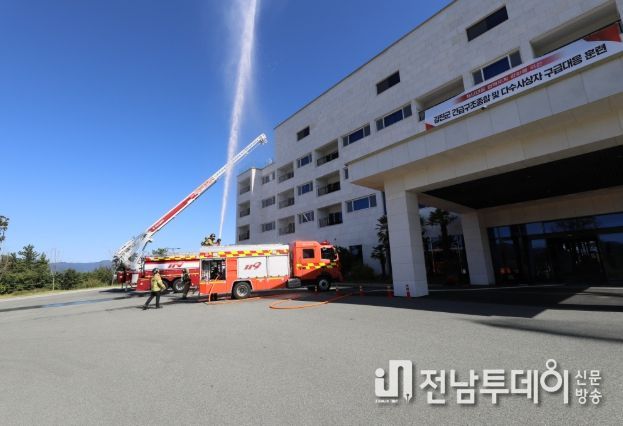 전남투데이 박동운 기자 | 강진소방서는 9월 23일 강진군 다산베아채 리조트에서 대규모 재난 상황을 대비한 2025년 긴급구조종합훈련을 실시했다. 이번 훈련은 재난 발생 시 유관기관 간의 공조체계를 강화하고, 실제 현장과 같은 대응능력을 높이기 위해 마련됐다.
