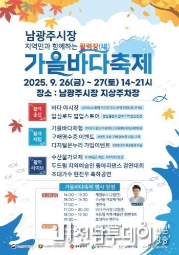 전남투데이 정홍균 기자 | 광주 동구는 오는 26~27일 이틀간 남광주시장 공영주차장 일원에서 ‘활력장! 가을 바다 축제’를 개최한다고 밝혔다.