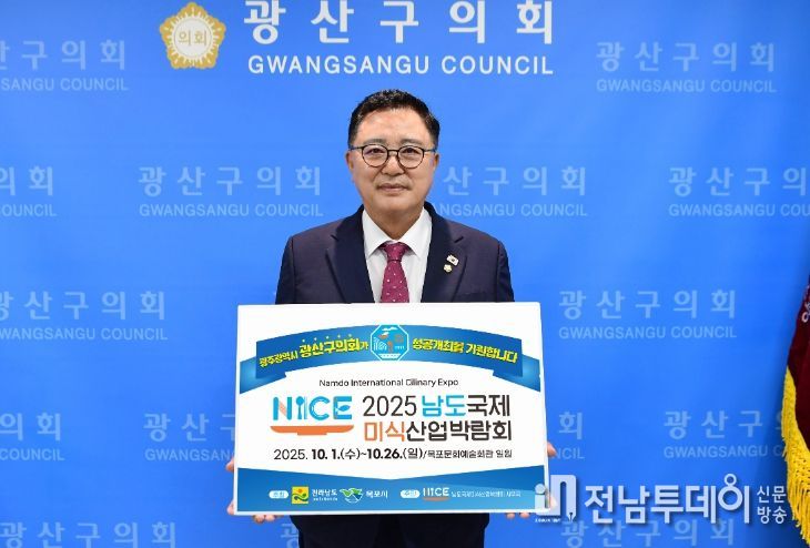 전남투데이 정홍균 기자 | 김명수 광주 광산구의회 의장이 24일 ‘2025 남도국제미식산업박람회’의 성공적인 개최를 기원하는 릴레이 응원 캠페인에 동참했다.