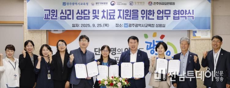 광주시교육청은 25일 본청 상황실에서 광주기독병원, 국립나주병원, 동명병원, 천주의 성요한병원 등 4곳과 ‘교원의 마음건강 증진을 위한 업무협약’(MOU)을 체결했다.