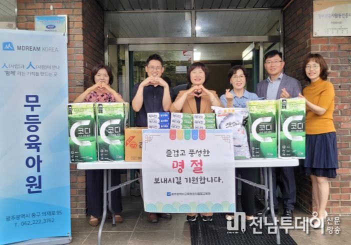 전남투데이 정홍균 기자 | 광주광역시교육청창의융합교육원 직원들은 추석을 앞두고 25일 동구 ‘무등육아원’을 방문해 아동들과 온정을 나누는 시간을 가졌다.