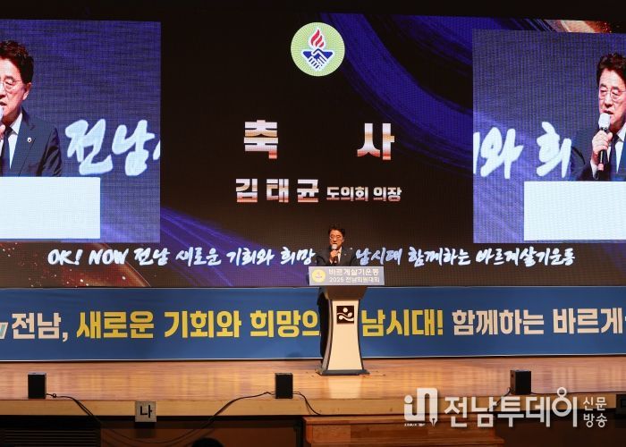 전남투데이 손영욱 기자 | 김태균 전남도의장은 9월 25일 전남도청 김대중강당에서 개최된 ‘2025 바르게살기운동 전남회원대회’에 참석하여 아름다운 전남만들기를 위해 노력해 온 유공회원에게 표창을 수여하고 축사와 함께 격려했다.