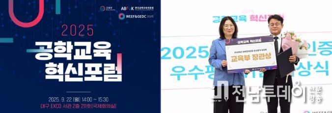 26일 전남대에 따르면, 공과대학 장민철 교학부학장(고분자융합소재공학부 교수‧공학교육연구센터장)이 지난 9월 22일 대구 EXCO에서 열린 ‘2025 공학교육 혁신포럼’에서 교육부장관상을 수상했다.