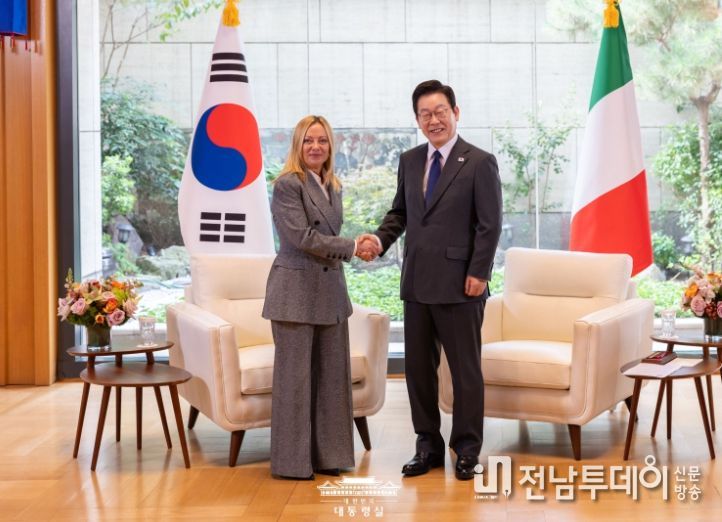 이재명 대통령은 24일(현지시간) 뉴욕에서 유엔총회 고위급 회기에 참석한 조르자 멜로니(Giorgia Meloni) 이탈리아 총리와 첫 양자 회담을 가졌다.