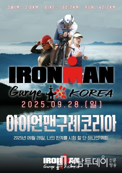 전남투데이 강길수 기자 | 대한철인3종협회가 주최하고 전라남도, 구례군, 대한체육회가 후원하는 '2025 아이언맨 구례 코리아 대회(2025 IRONMAN GURYE KOREA)'가 9월 26일부터 29일까지 4일간 구례군 일대에서 개최된다.