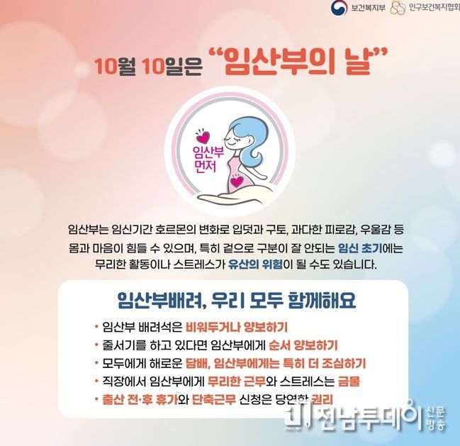 전남투데이 김윤걸 기자 | 전라남도 나주시는 오는 10월 10일 ‘임산부의 날’을 앞두고 임신과 출산의 중요성을 되새기고 임산부가 존중받는 사회적 분위기 조성을 위한 기념 캠페인을 ‘2025 나주영산강축제’ 기간 동안 추진한다고 밝혔다.