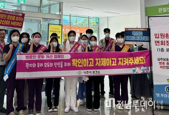 전남투데이 김윤걸 기자 | 전라남도 나주시보건소는 추석 명절을 앞두고 병원급 의료기관 3개소와 함께 ‘병문안 문화개선 캠페인’을 전개하고 병문안 관리 실태 점검을 했다고 밝혔다.