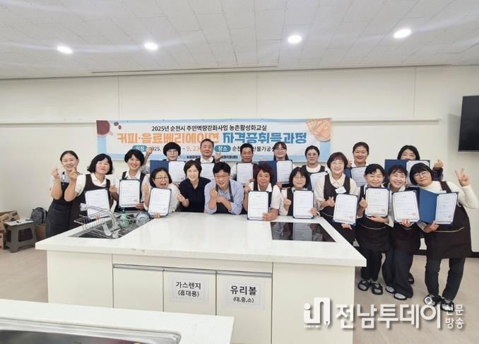 전남투데이 조평훈 기자 | 순천시는 농촌 주민들의 역량을 강화하고 소득 창출을 위해 추진한 ‘커피음료 베리에이션 자격증 취득 과정’을 지난 23일 마무리했다고 밝혔다.