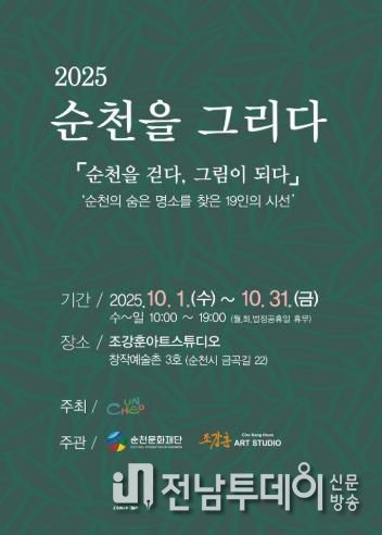 전남투데이 조평훈 기자 | 순천문화재단은 오는 10월 1일 오후 5시 개전식을 시작으로 10월 31일까지 순천창작예술촌 3호 조강훈 아트 스튜디오에서 「순천을 그리다 - 순천을 걷다, 그림이 되다」 전시를 개최한다.